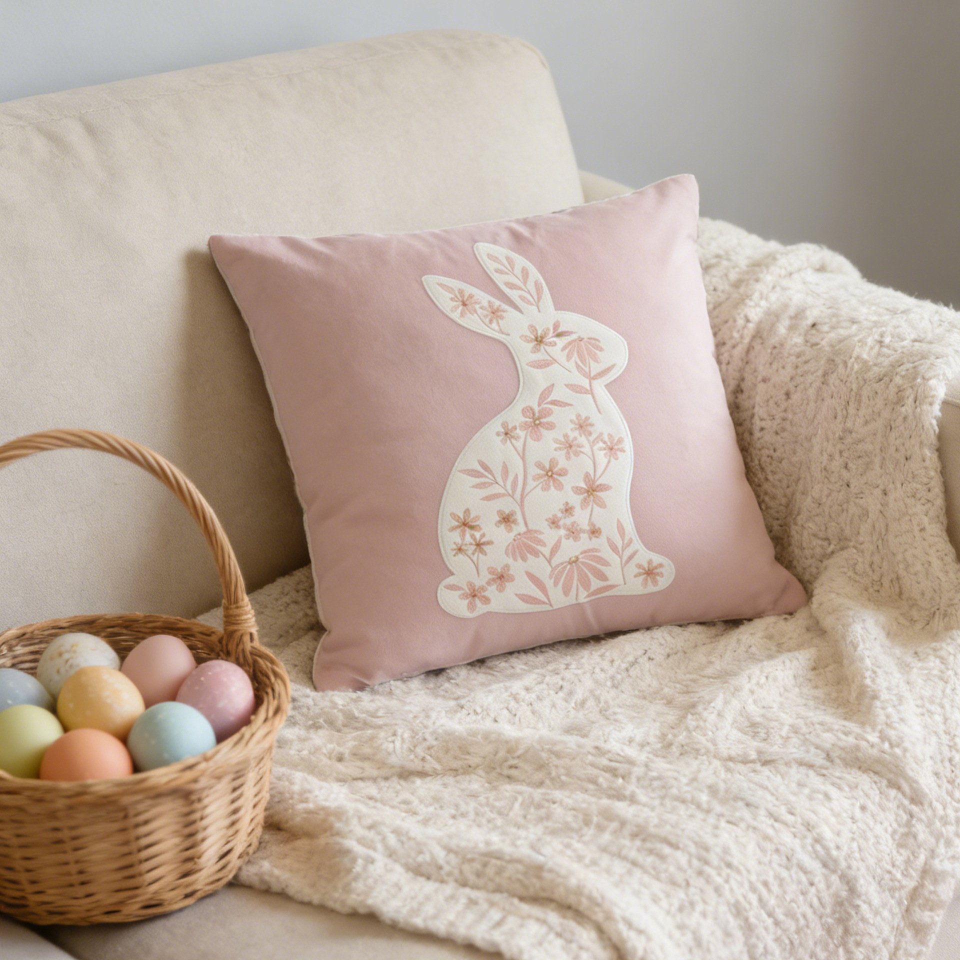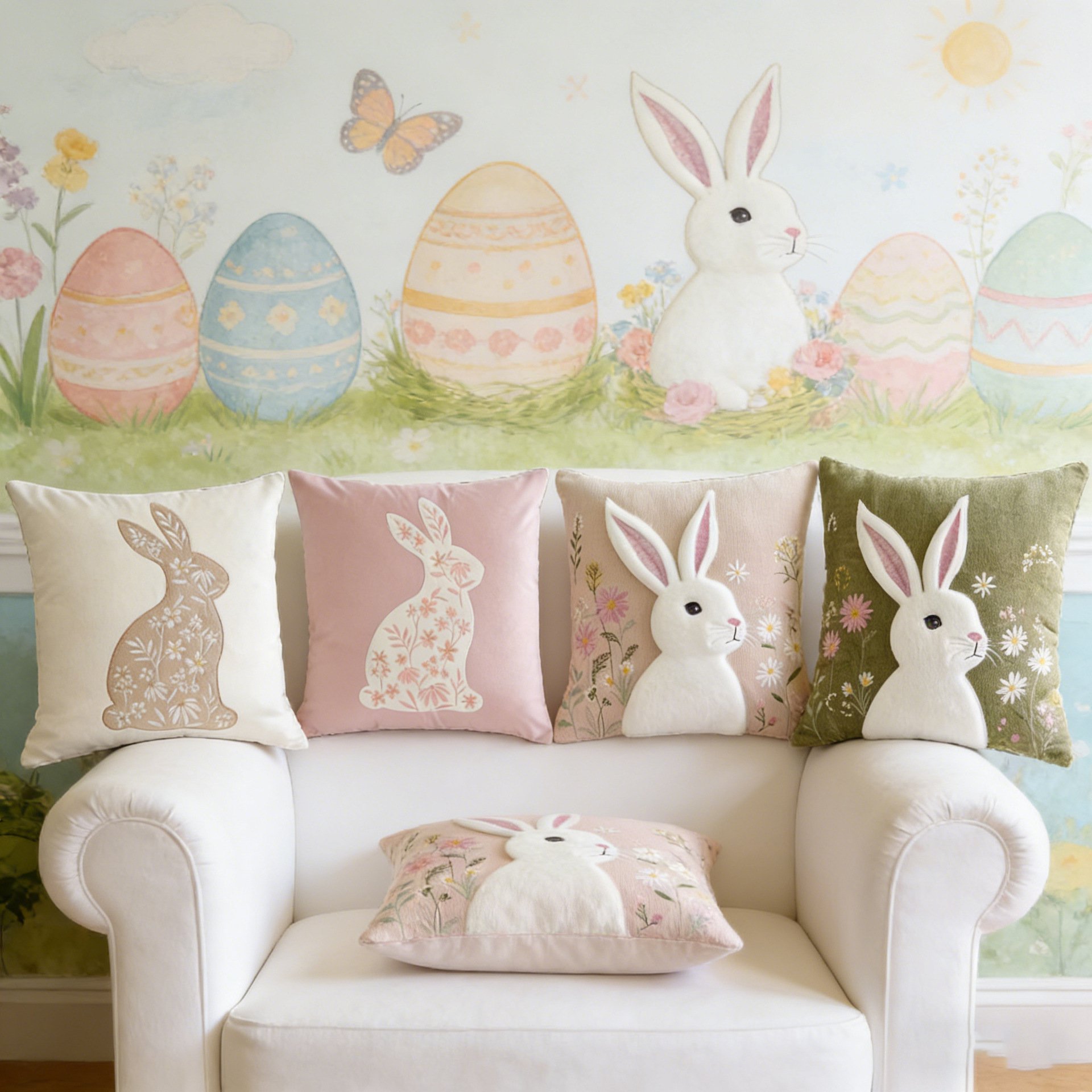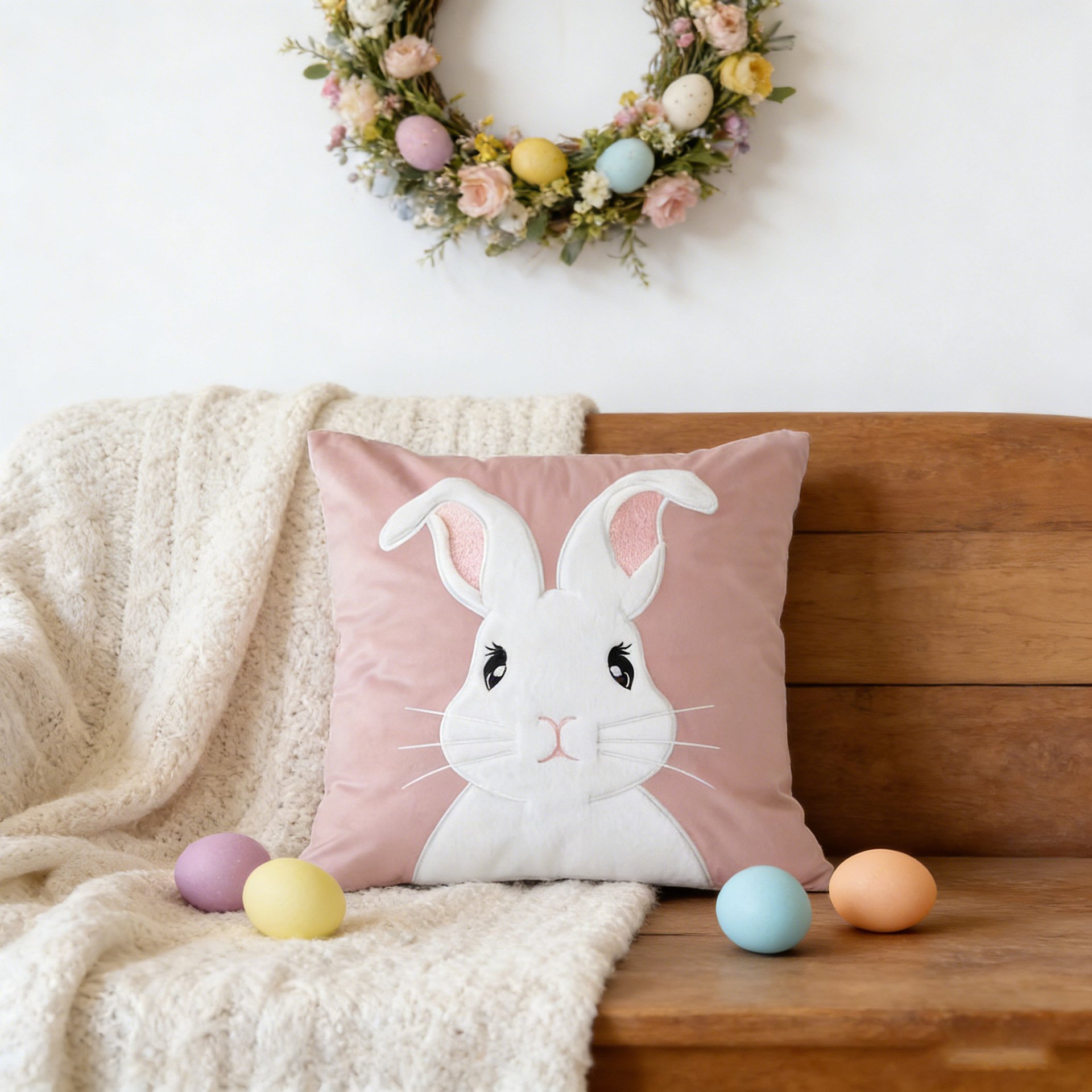 節日裝飾 可愛兔子圖案沙發抱枕套